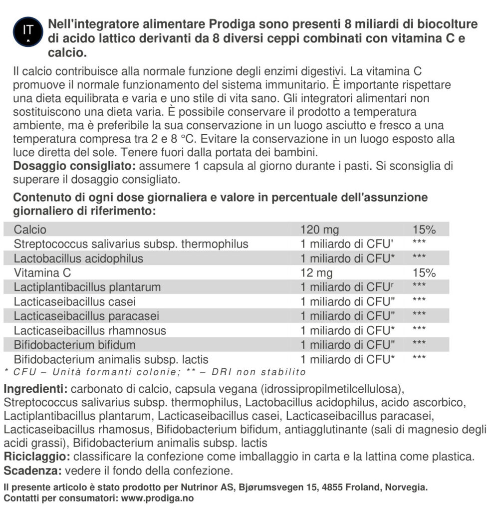 Per saperne di più sugli ingredienti e avere una panoramica completa del contenuto di Prodiga Plus, consulta l’elenco degli ingredienti qui: